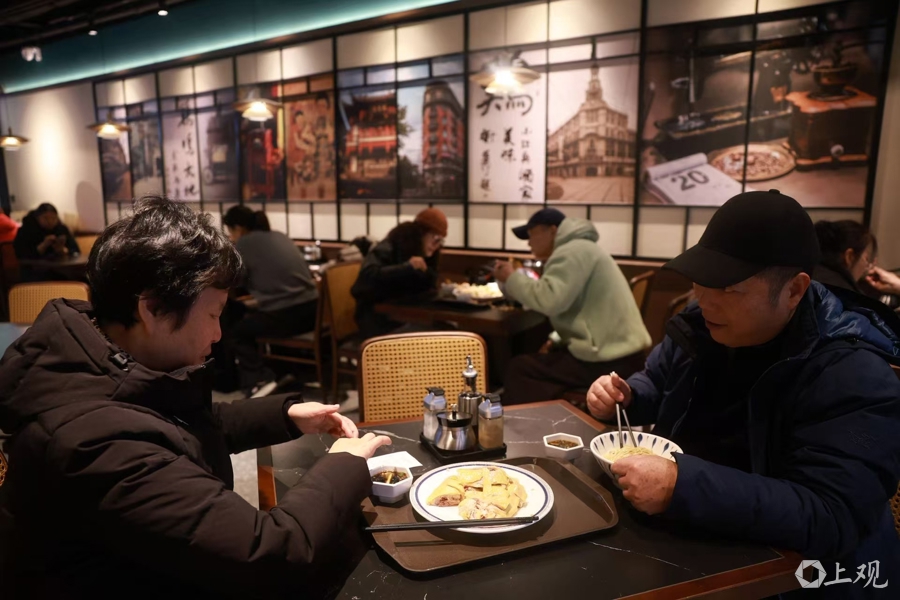 在云南路时,小绍兴就是最火的老字号之一,落地山西南路后,客人更多了,不但原来的老顾客赶过来,还有很多南京路上的游客。窦正荣戴着红色围巾,笑意盈盈。他1993年进店工作时,正是小绍兴云南路总店最火的时候,当时“可谓一座难求”。9日,山西路店试营业,客似云来。“我仿佛又看到当年的盛景了。”